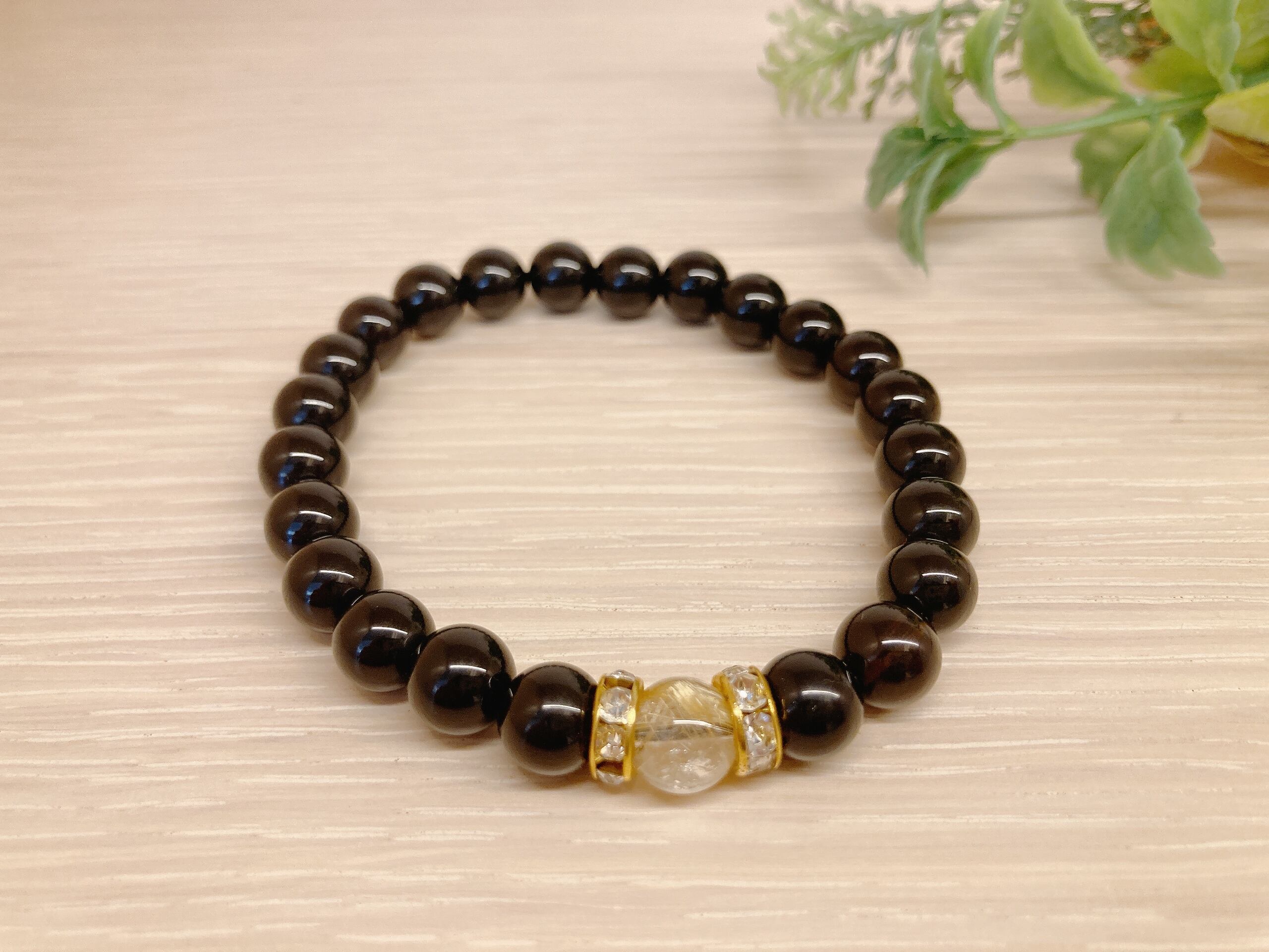 モリオン・ルチルクォーツ・ロンデルゴールド 18cm =金運・直感力・愛情・力強さ= 13-35-1